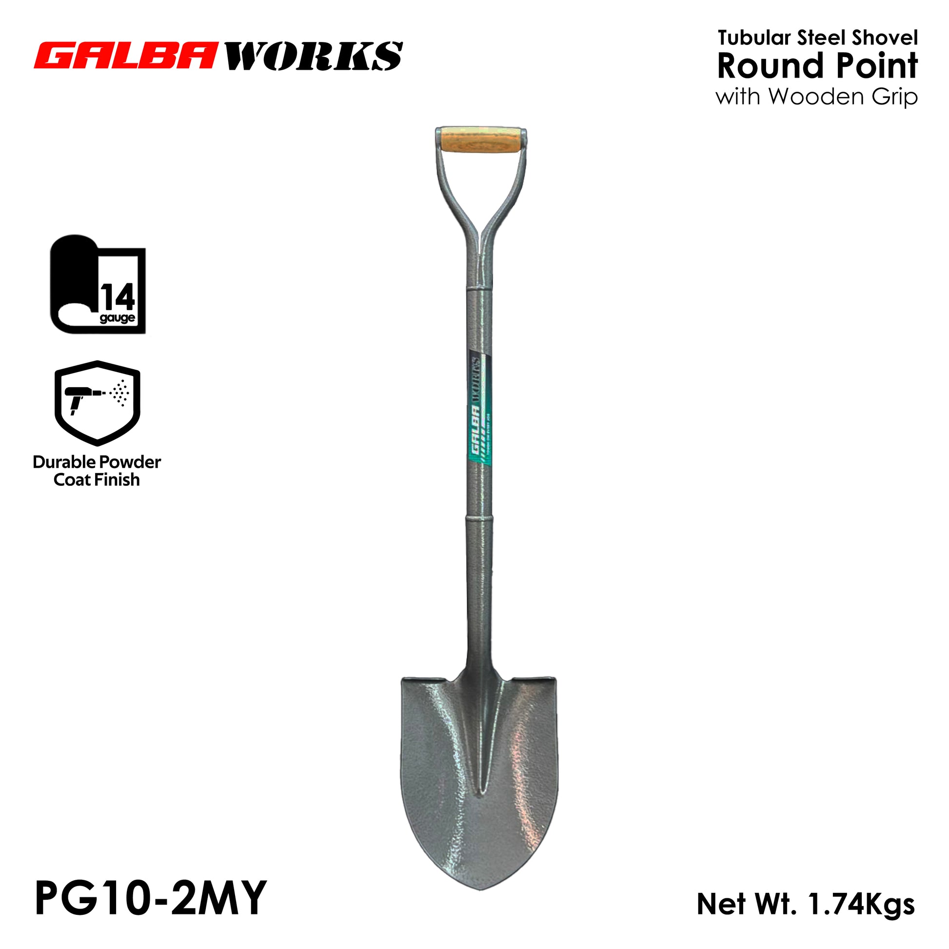 Galba Works PG10-2MY Tubular Steel Shovel is a heavy-duty digging tool built for construction, landscaping, and gardening work.