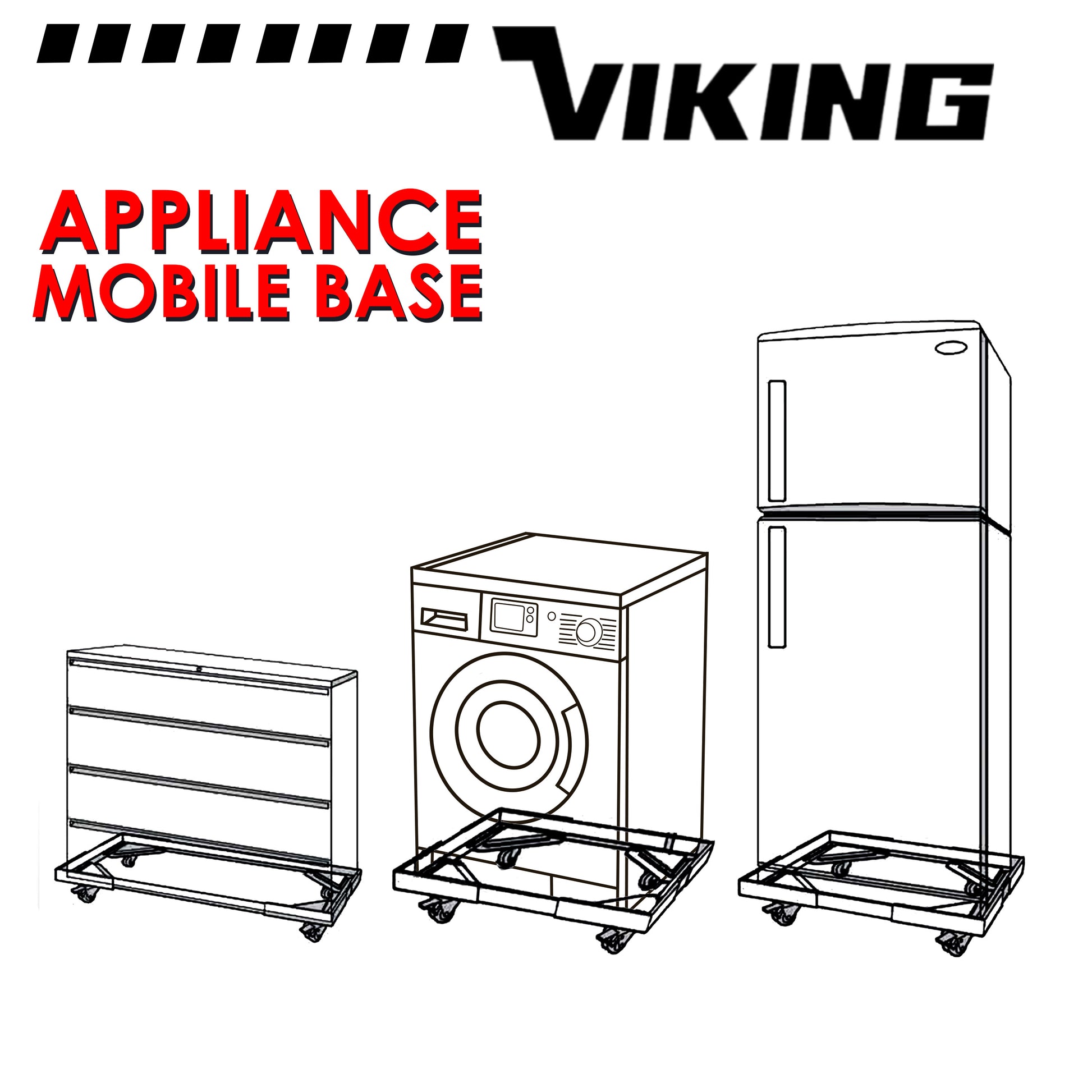 VIKING Adjustable Mobile Base for Appliances Heavy Duty Twin Wheel with Double Brake 300 kilo capacity
